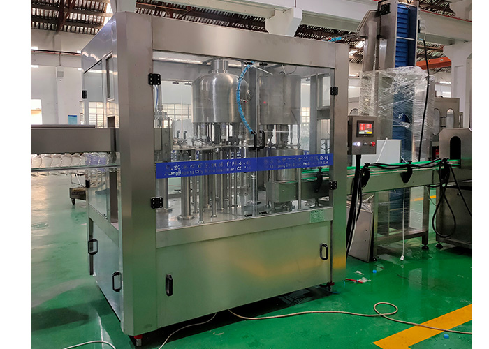 3. (Filling water into bottle) Bottle washing filling and capping machine.